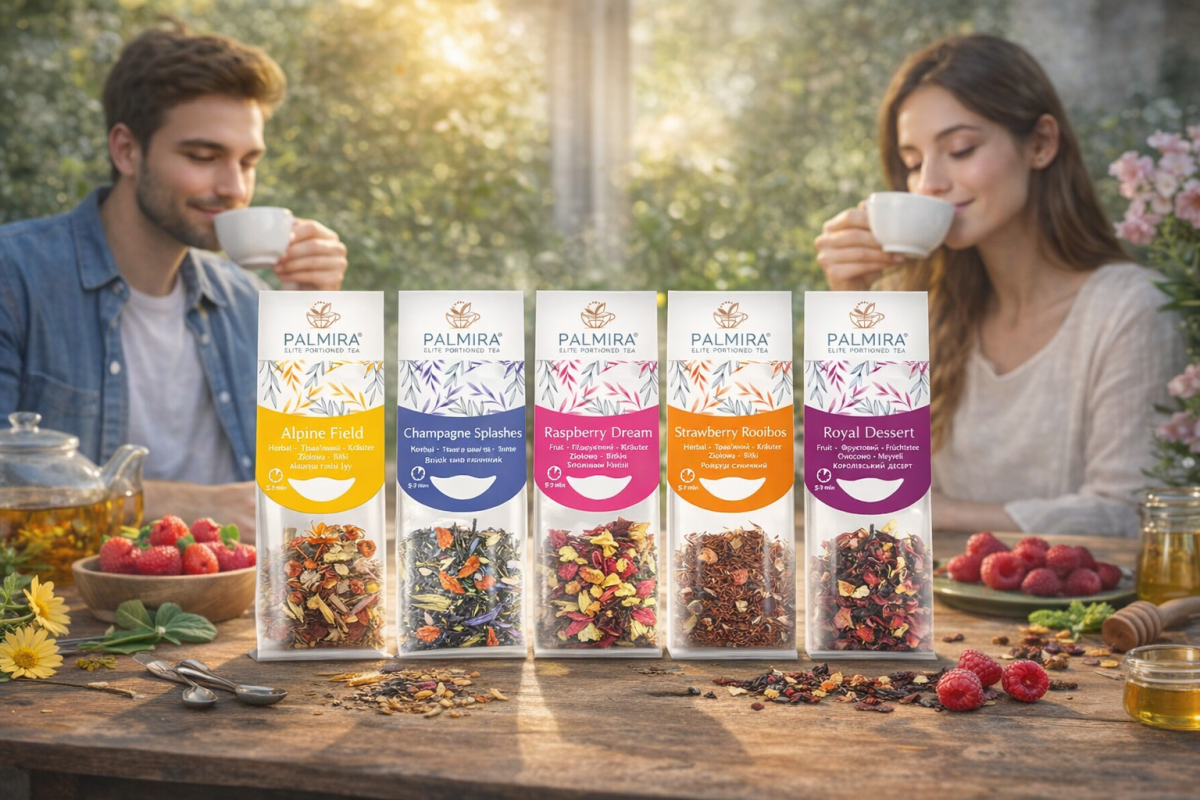 W ofercie Palmira znajdziesz zarówno klasyczne kompozycje liściaste, jak i aromatyczne mieszanki z owocami, kwiatami oraz rooibosem. Każda herbata powstaje z dbałością o szczegóły – od starannie dobranych składników po wyjątkowy balans smaku.